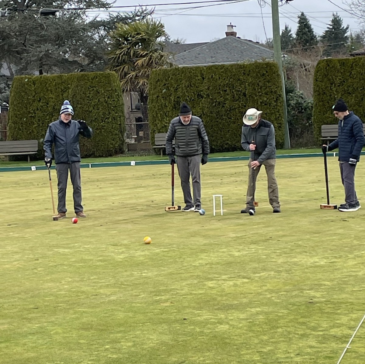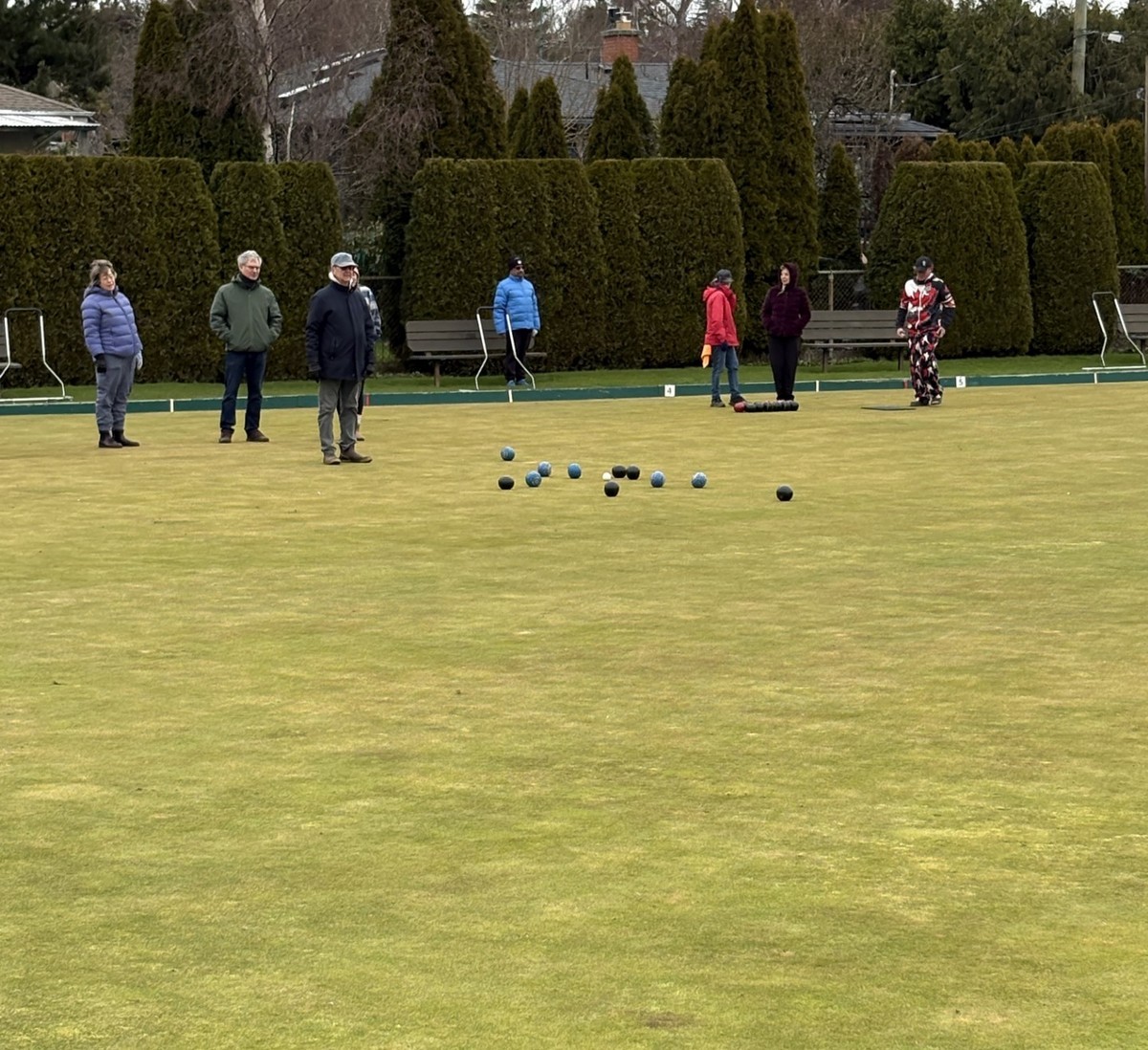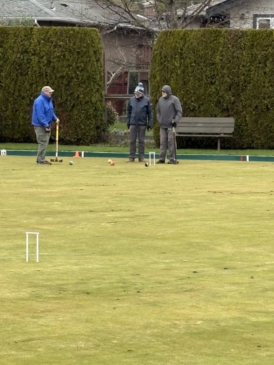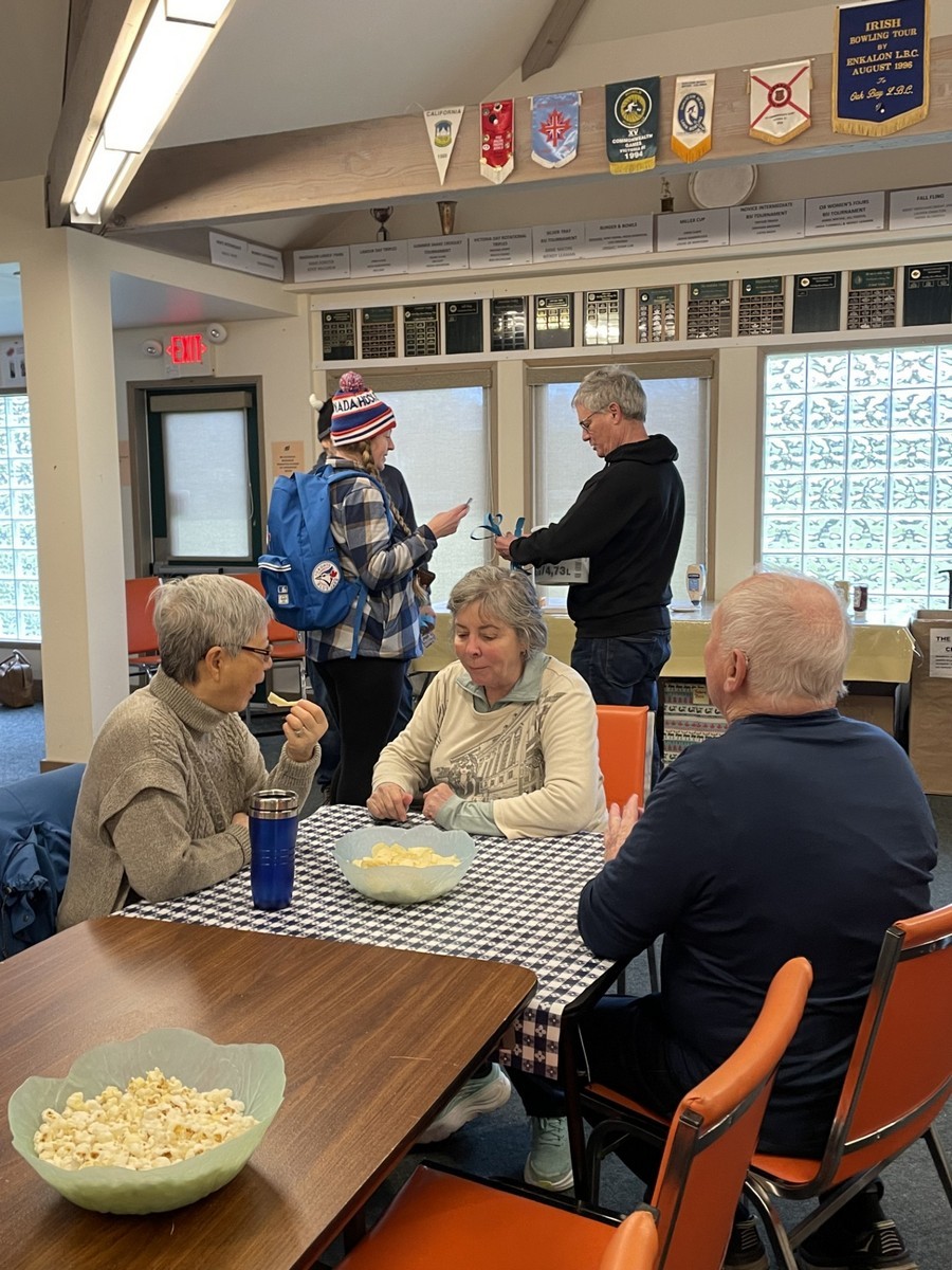 40 brave members came out to play 6 ends of lawn bowling and complete a few games of croquet. It was so cold that no one recognized Brent M given that he was wearing long pants. The games began with a “Spider” which was won by Ray D but only after a measurement with another bowl confirmed that Ray had won. He was presented with $21 Once the games were over members gathered in Carnarvon for hotdogs, chips, and sweets. Coffee, tea and libations from the bar were available. Members warmly thanked all of the members who helped to make it such a great day. To wrap things up the 50/50 draw was held with Kory S winning $95. Thanks to everyone for coming out.