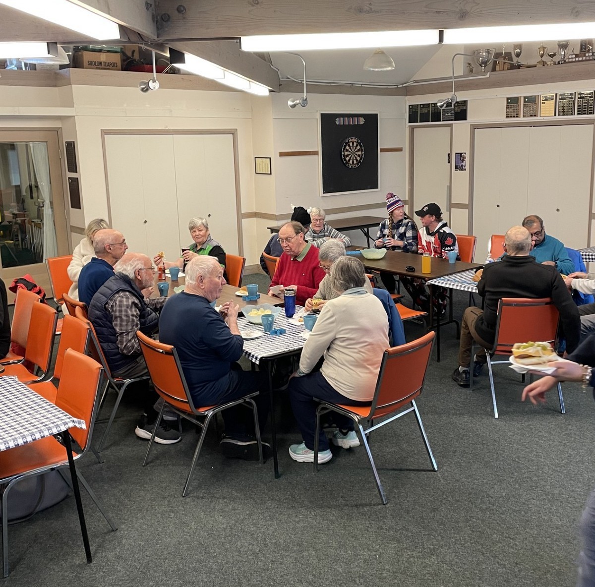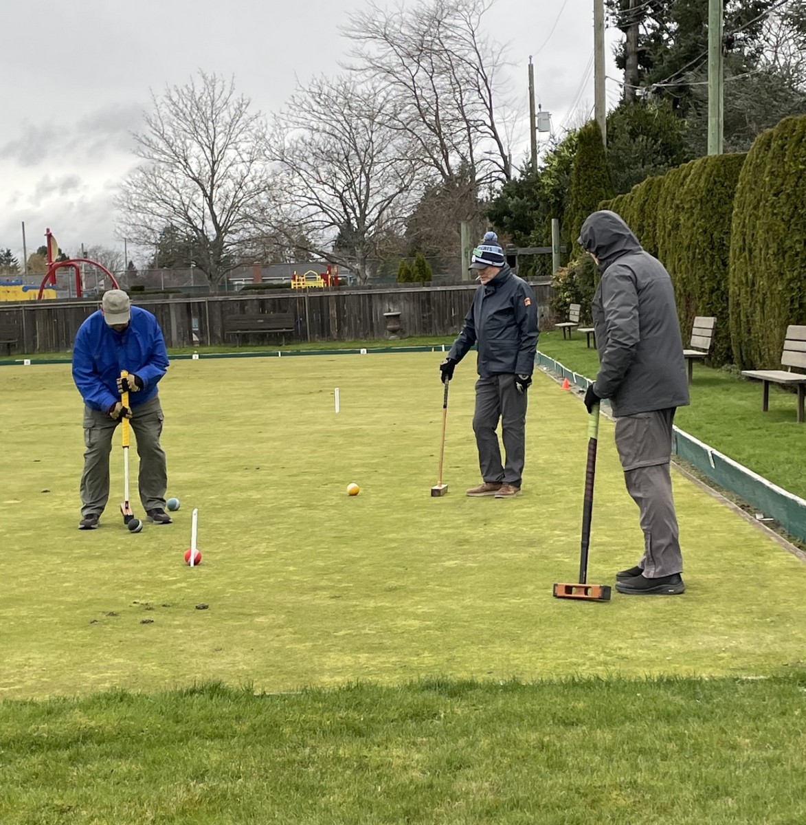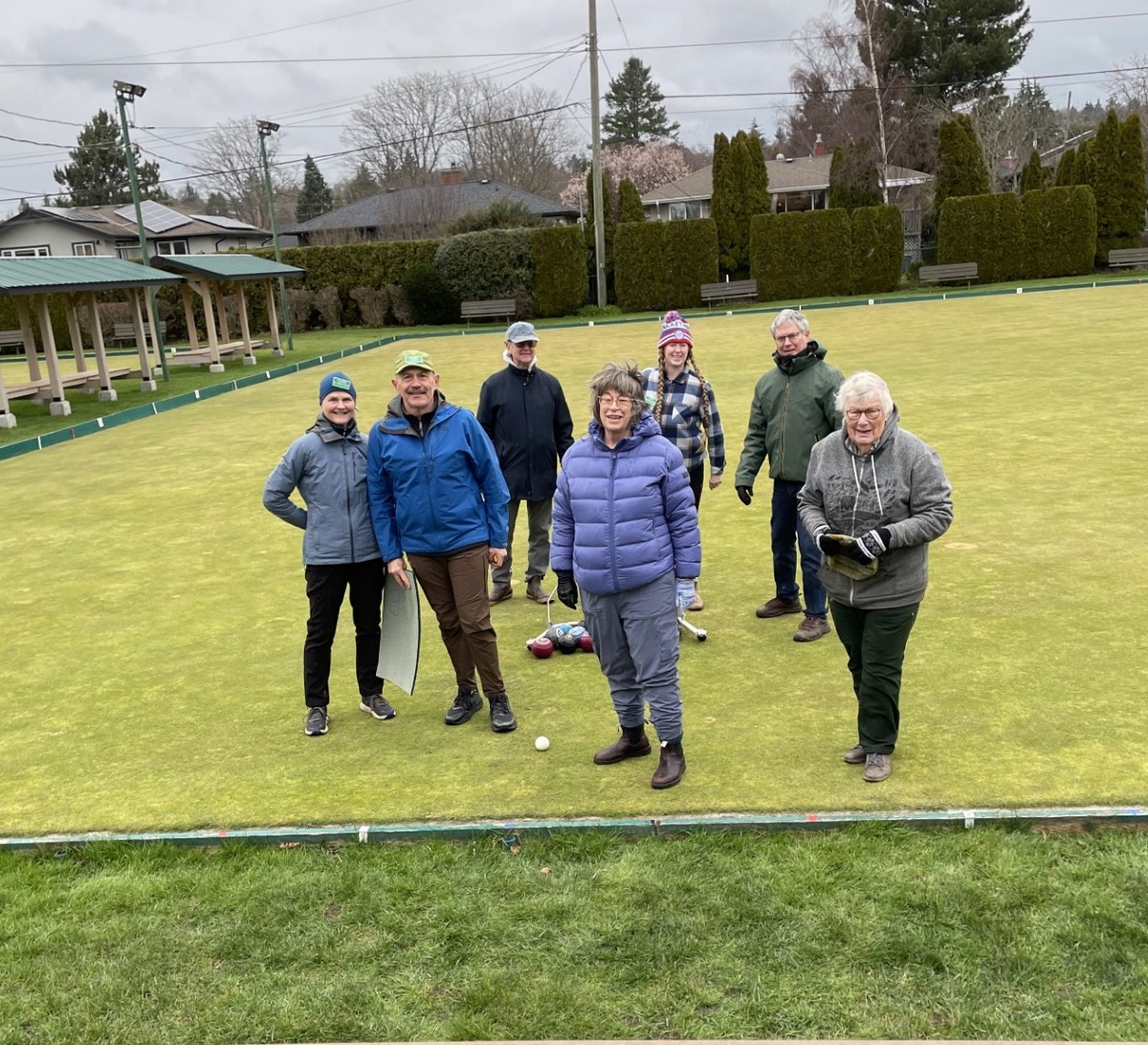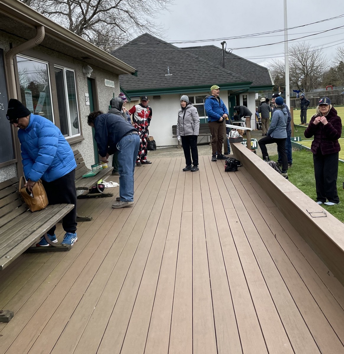 40 brave members came out to play 6 ends of lawn bowling and complete a few games of croquet. It was so cold that no one recognized Brent M given that he was wearing long pants. The games began with a “Spider” which was won by Ray D but only after a measurement with another bowl confirmed that Ray had won. He was presented with $21 Once the games were over members gathered in Carnarvon for hotdogs, chips, and sweets. Coffee, tea and libations from the bar were available. Members warmly thanked all of the members who helped to make it such a great day. To wrap things up the 50/50 draw was held with Kory S winning $95. Thanks to everyone for coming out.