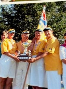 From 2001- 2004 the fours team of Bev Johnson, Sheridan Elston (former Oak Bay member), Lynn McElroy and Betty Walker won the BC Championship and competed at the Nationals. In 2002 they won the gold medal in Regina. Later that year they received a Sport BC Award as Bowls BC Team of the Year.