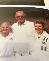 When Betty started skipping, she also wanted to play in more mixed events. One day someone said to her why don’t you ask John Maclachlan, he’s keen. So Betty did ask John, he happily agreed, and they became a regular fixture at many mixed events for years to come. Pictures below show John with Betty and Lynn McElroy and our own Rick Armstrong with Betty and German Santana.