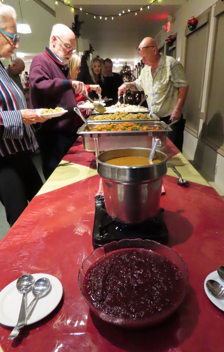 “Happy Hour” started at 5 pm, and allowed lots of time for mingling and visiting, and was followed by a lovely catered turkey dinner served by Keith Campbell of “Sliders Cafe & Catering.”