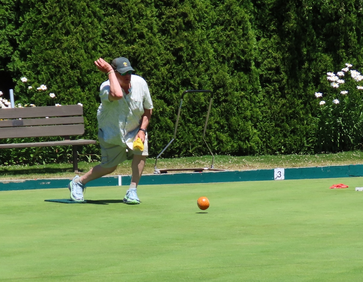 Tuesday morning started with the usual setting up of 5 rinks on the East Green; thank you for all the help in getting this going. Jennifer Harley was responsible for the registration desk, collecting fees and distributing scorecards. The real issue turned out to be the hot weather, not the attendance; everyone turned up in time. There were, however, a number of players who helped the draw by filling in where necessary. The temperature was projected to rise to 31 °C by the afternoon, and the tournament manager did offer to shorten the tournament, but like troopers, they all wanted to play the full schedule.