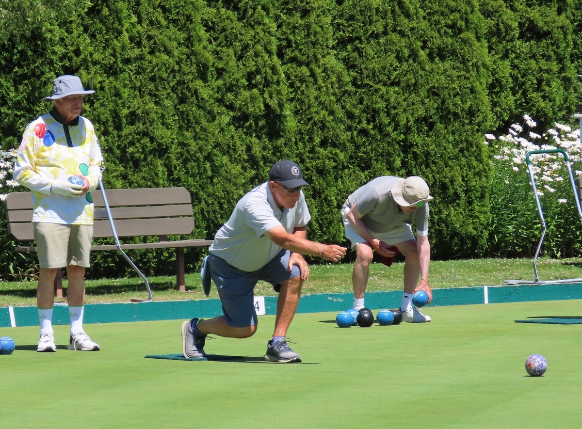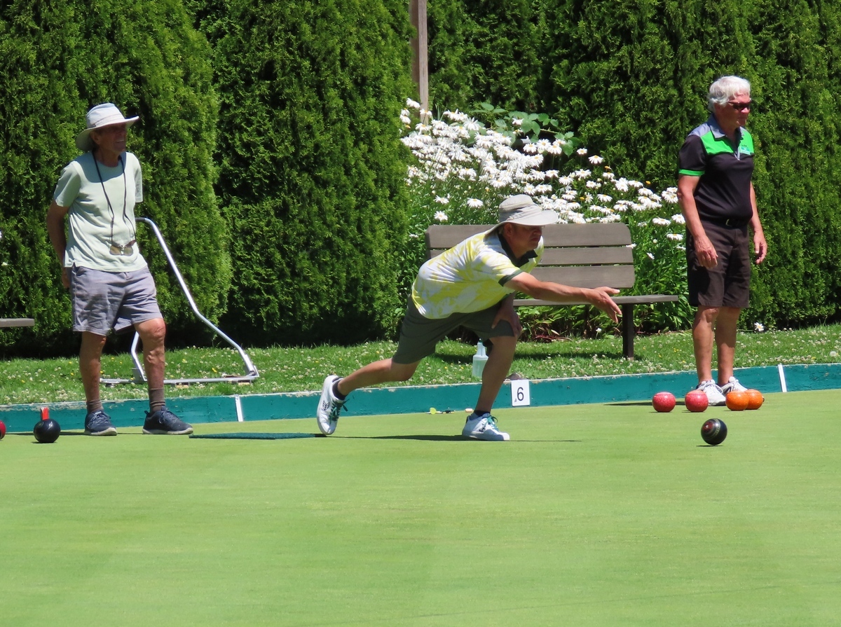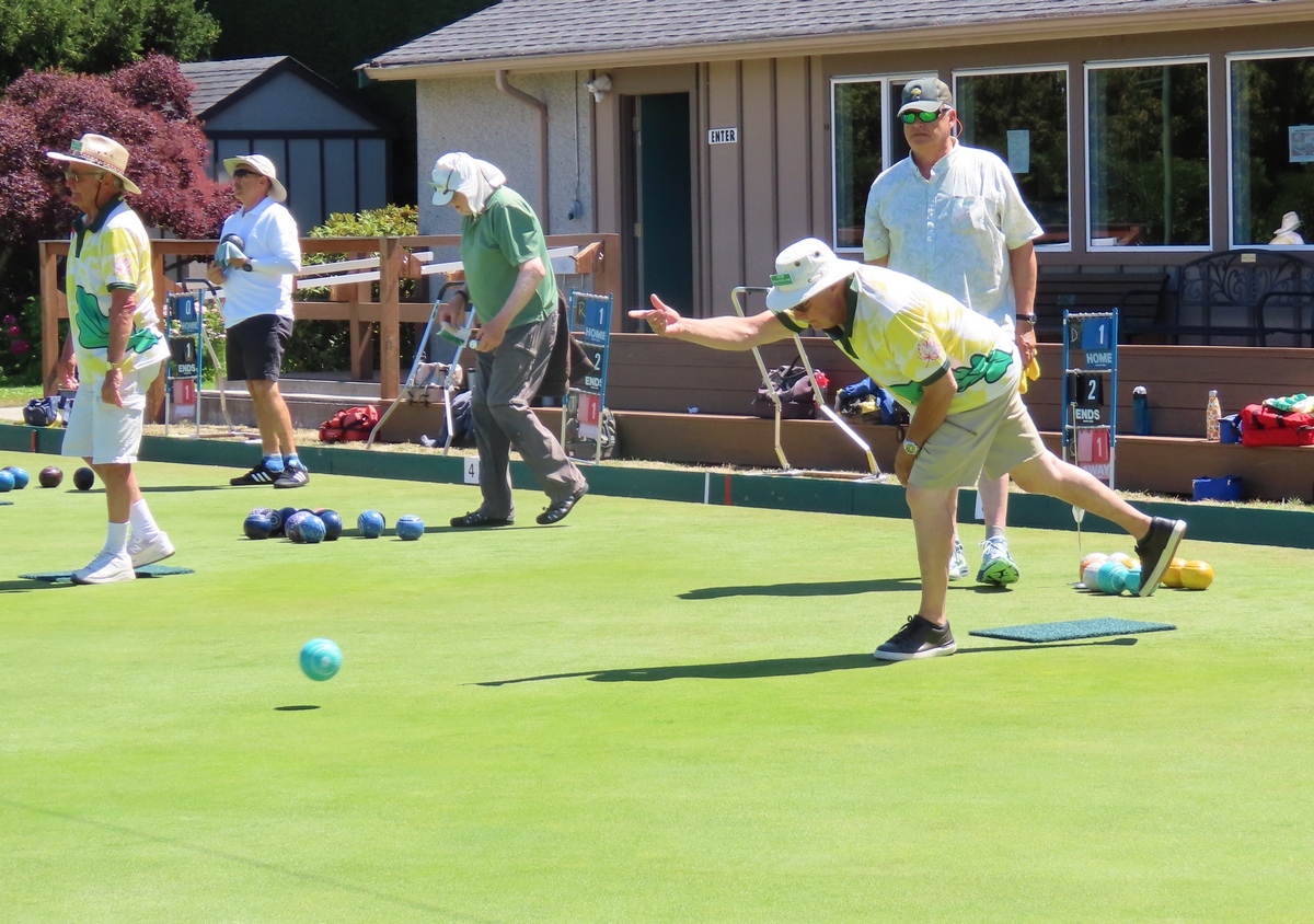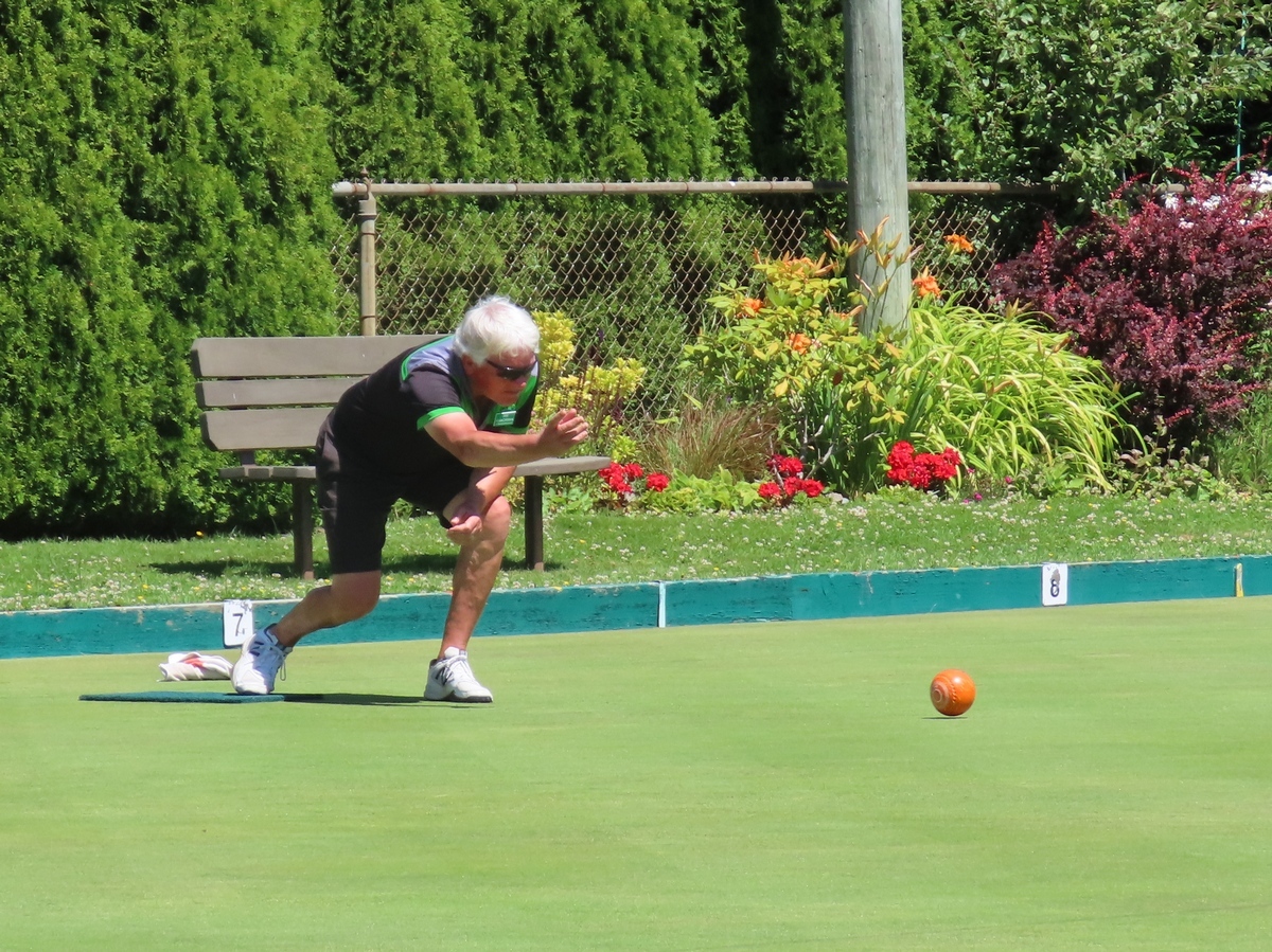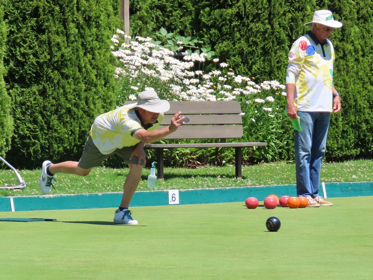 We had 10 teams of Men’s Pairs ready to go. Each team played three matches of 10 ends each. With tea/coffee/goodies breaks between games. We did get the outdoor misting system going for cooling down the players … much appreciated by everyone … it kept us going.