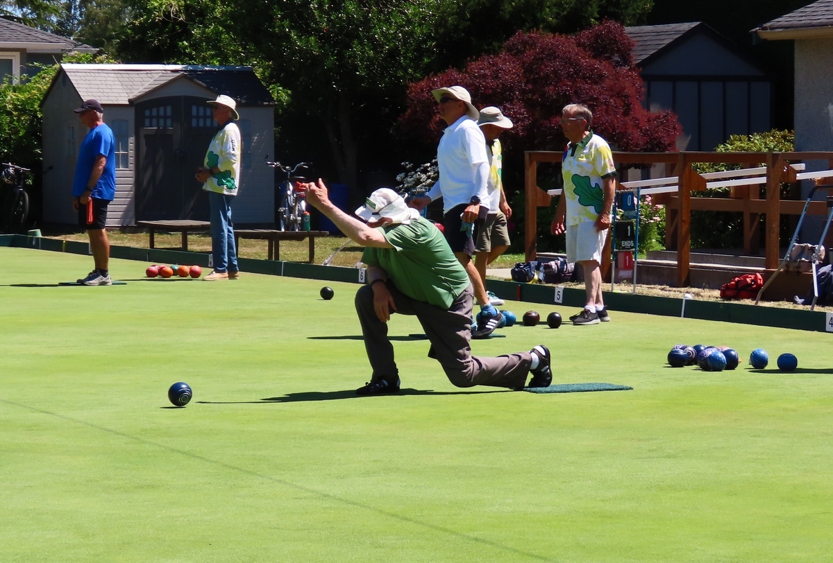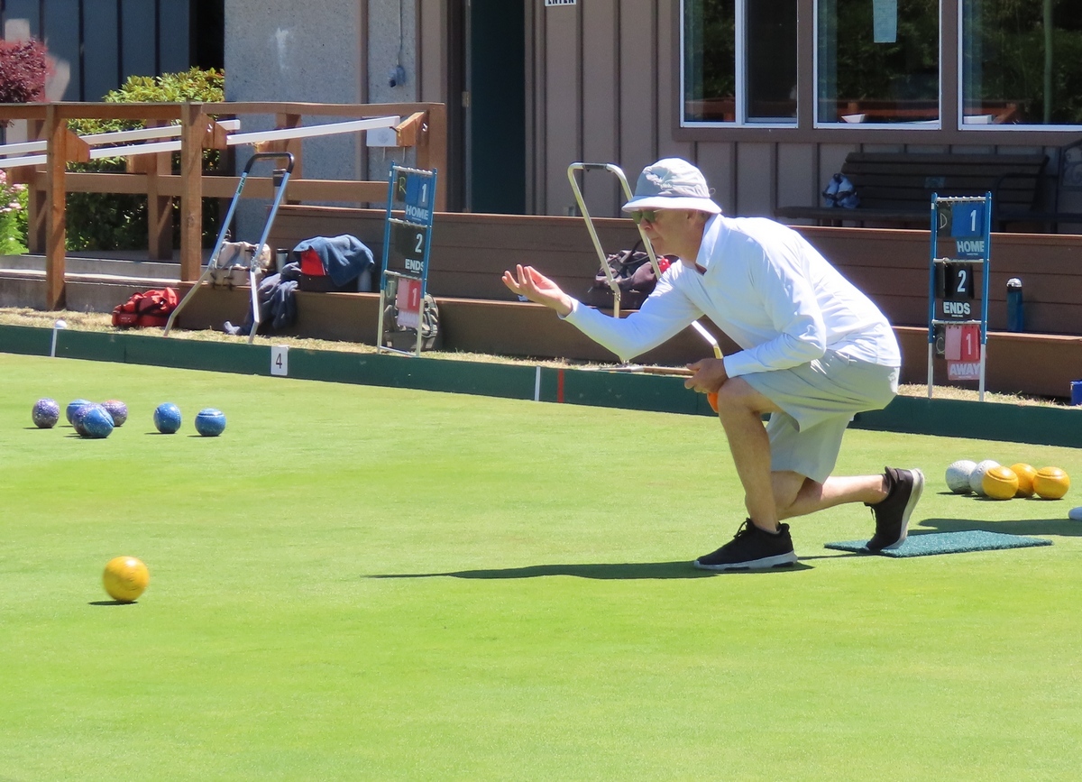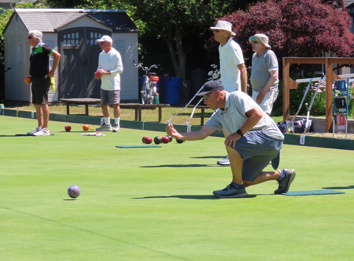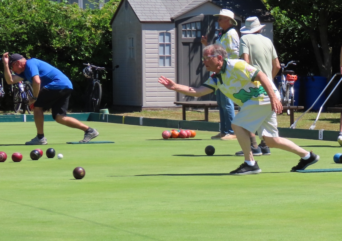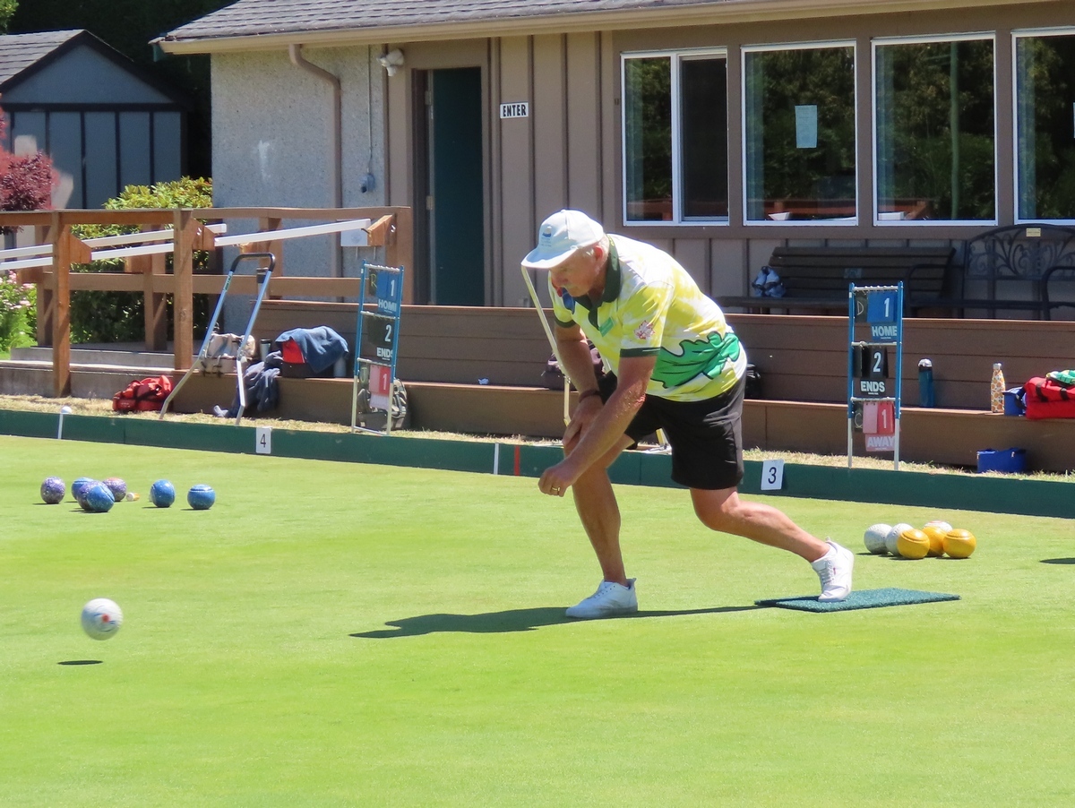 We had 10 teams of Men’s Pairs ready to go. Each team played three matches of 10 ends each. With tea/coffee/goodies breaks between games. We did get the outdoor misting system going for cooling down the players … much appreciated by everyone … it kept us going.