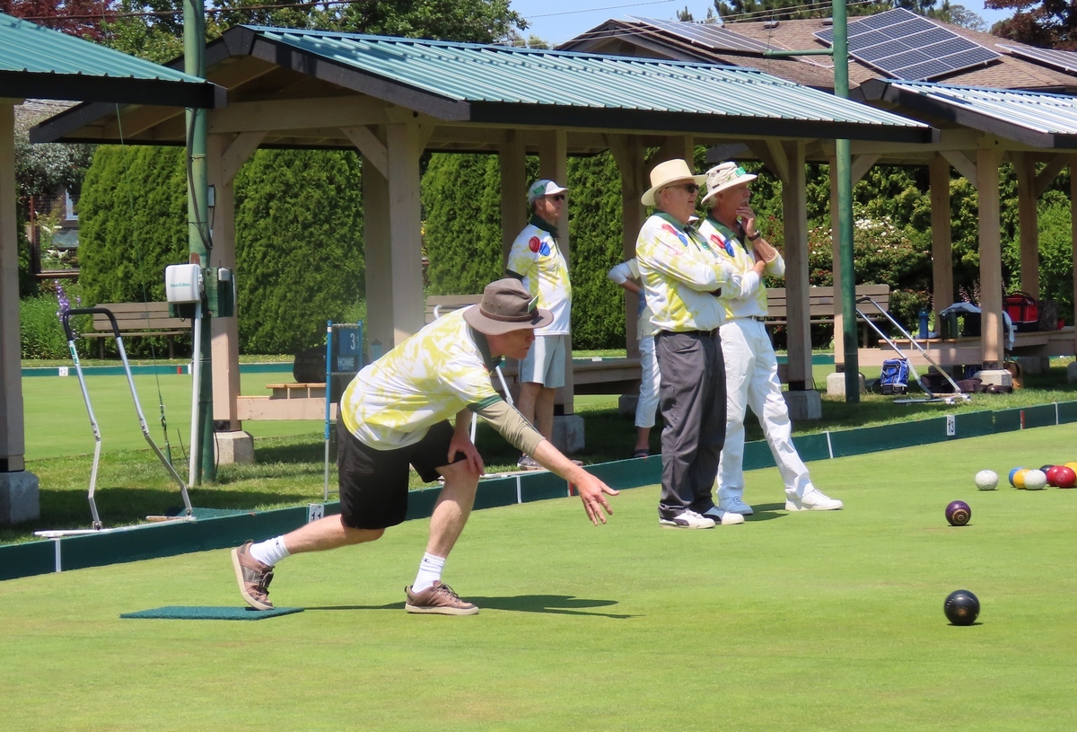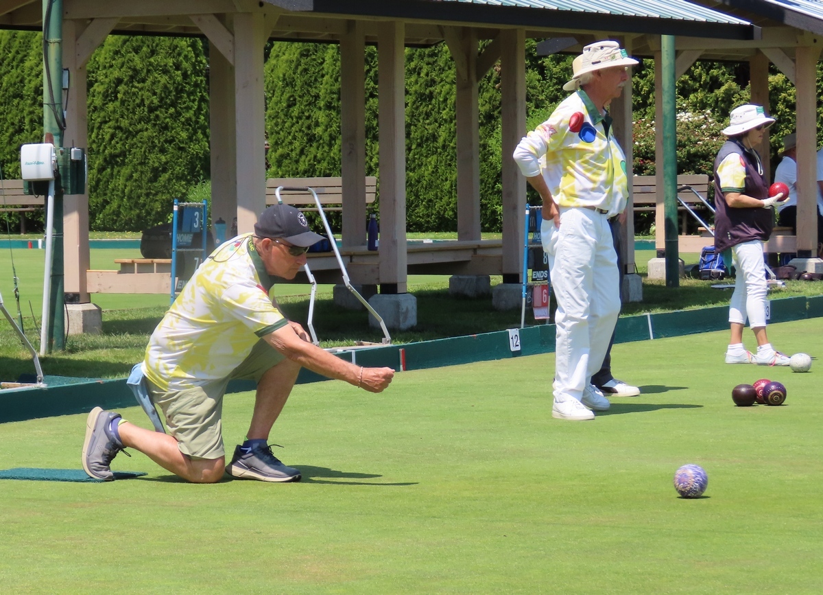 Father’s Day got off to a great start with the Miller Cup underway at 9:45 a.m. plus two more games during the day, wrapping up with fellowship, food and a beverage or two! Lots of good bowling from the 10 teams in the tournament and nice to see some newer bowlers getting their lawn bowling tournament experience underway.